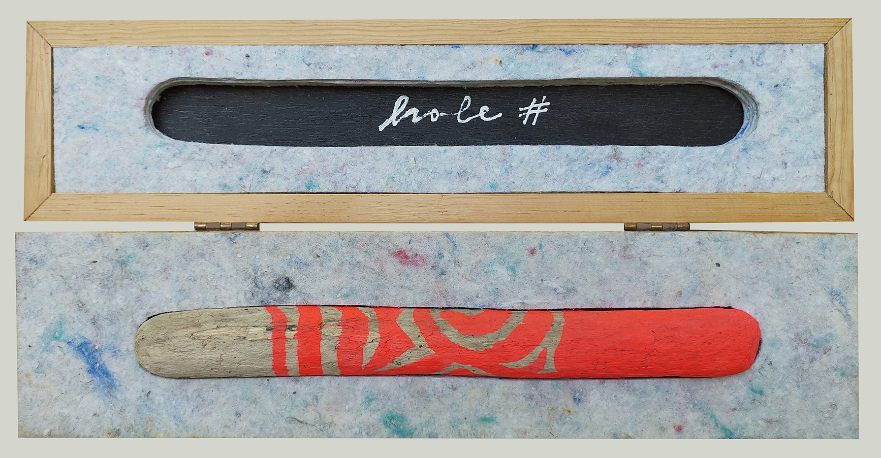 wood, fluorescent acrylic paint and felt in wooden box